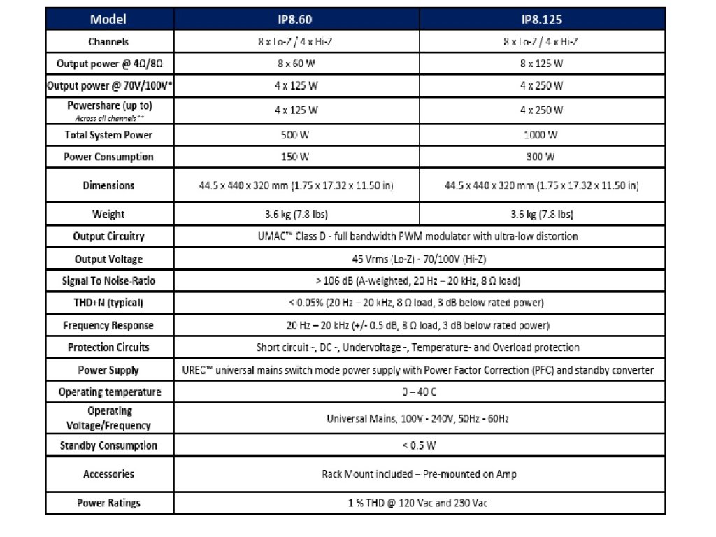 Zosilňovače IP8 od Hortus Audio predstavujú najvyšší modelový rad digitálnych zosilňovačov so vstavaným DSP a Wi-Fi rozhraním. Poskytujú maximálnu flexibilitu v inštalačných projektoch s vysokými nárokmi na výkon a počet kanálov – ideálne pre väčšie ozvučovacie systémy v komerčných aj verejných priestoroch.