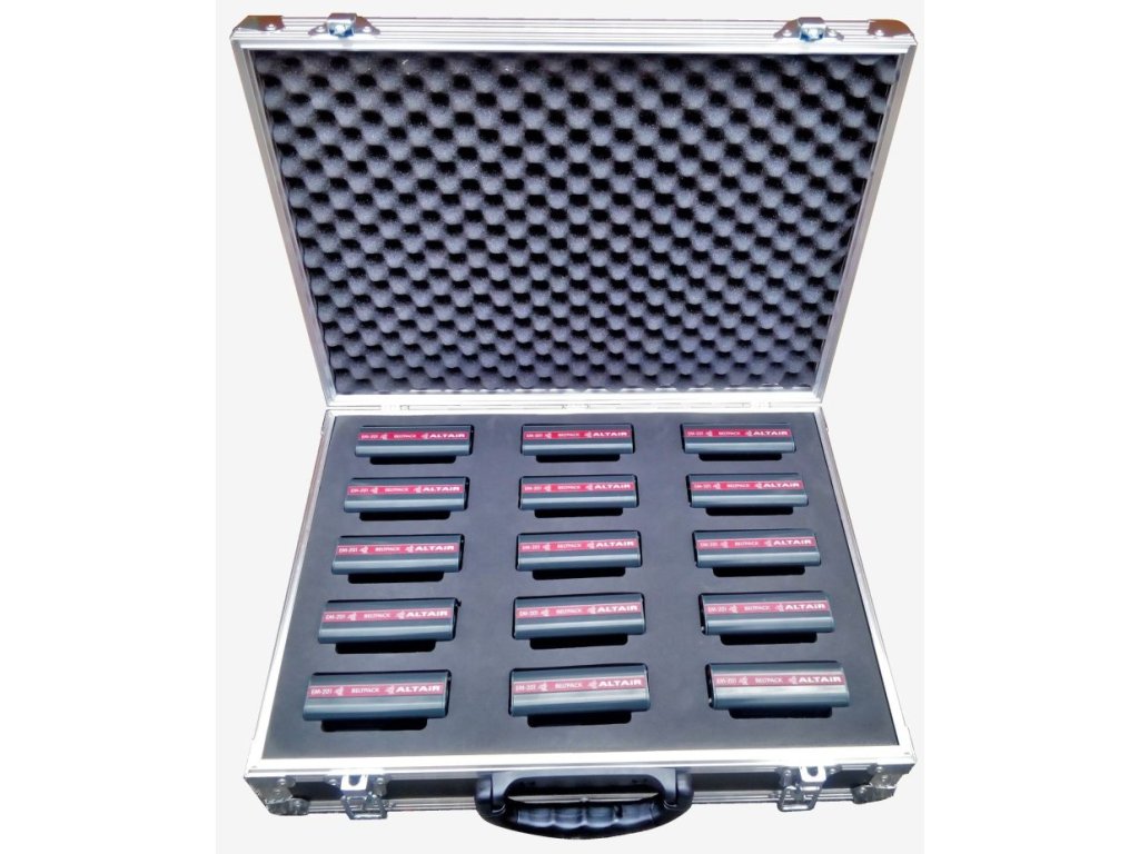Profesionálny prepravný kufor určený na bezpečné uloženie a transport až 15 káblových pásových jednotiek série EM od značky ALTAIR. Vhodný pre prenášanie aj skladovanie techniky v náročných podmienkach, s pevnou konštrukciou a vnútorným usporiadaním na ochranu zariadení.